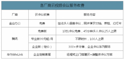 各廠商云視頻會(huì)議服務(wù)收費(fèi)