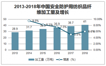 2013-2018年中國安全防護用紡織品纖維加工量及增長
