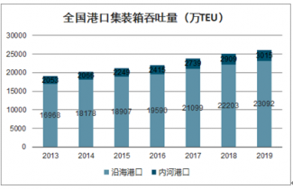 隨著國內(nèi)貿(mào)易的穩(wěn)步上升,內(nèi)貿(mào)集裝箱物流行業(yè)下游企業(yè)物流需求上升,帶動行業(yè)需求。2019年中國內(nèi)貿(mào)和內(nèi)支線集裝箱運輸需求分別增長5.65%和8.03%。國內(nèi)主要港口內(nèi)貿(mào)集裝箱物流吞吐量快速上升,2019年,全國港口集裝箱吞吐量達到26,017萬TEU。