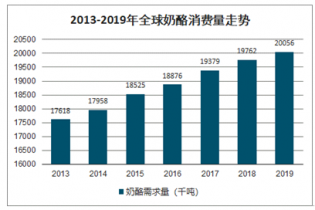 2013-2019年全球奶酪消費(fèi)量走勢(shì)