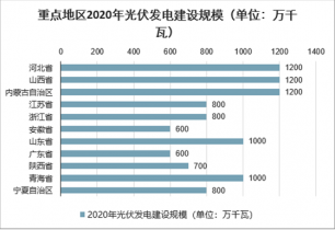 重點(diǎn)地區(qū)2020年光伏發(fā)電建設(shè)規(guī)模(單位:萬(wàn)千瓦)