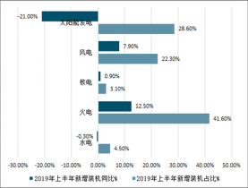 2019年上半年我國(guó)新增發(fā)電裝機(jī)分類型占比情況
