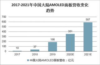 2017-2021年中國大陸AMOLED面板營收變化趨勢