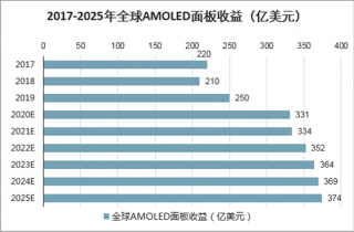 AMOLED面板受到中小尺寸智能移動終端市場快速增長的帶動,近年來發展迅速。2019年,全球AMOLED面板營收達到251億美元,在新型顯示器件產業總營收占比為21.50%。預計到2020年末,AMOLED面板營收將突破300億美元。