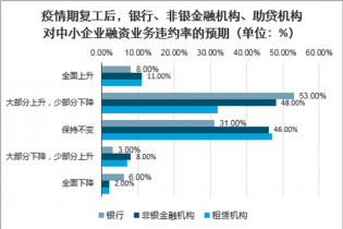 .疫情期復工后,銀行、非銀金融機構、助貸機構對中小企業融資業務違約率的預期(單位:%)