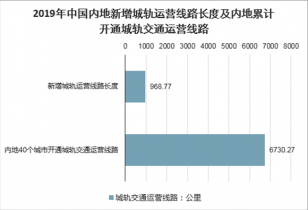 2019年中國內(nèi)地新增城軌運(yùn)營線路長度及內(nèi)地累計(jì)開通城軌交通運(yùn)營線路