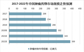 2017-2022年中國腫瘤藥物市場規模走勢預測