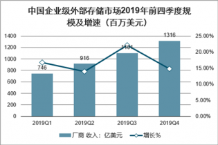 中國企業(yè)級外部存儲市場2019年前四季度規(guī)模及增速(百萬美元)
