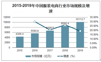 2015-2019年中國服裝電商行業(yè)市場規(guī)模及增速