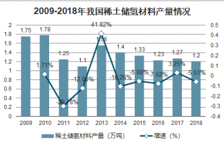2009-2018年我國稀土儲(chǔ)氫材料產(chǎn)量情況