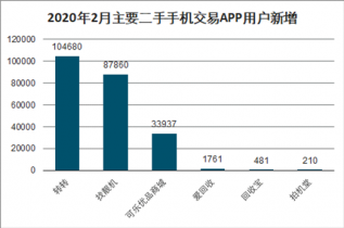 從新增用戶規模來看,轉轉、找靚機持續領先。2020年2月份,轉轉新增10.47萬,其次為二手手機找靚機,月度新增8.79萬。