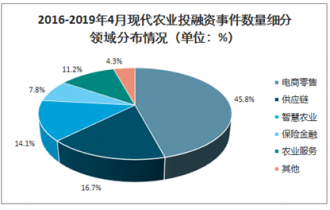 2016-2019年4月現(xiàn)代農(nóng)業(yè)投融資事件數(shù)量細分領域分布情況(單位:%)
