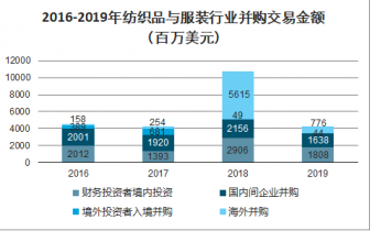 2016-2019年紡織品與服裝行業(yè)并購交易金額(百萬美元)