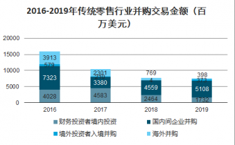 2016-2019年傳統(tǒng)零售行業(yè)并購交易金額(百萬美元)