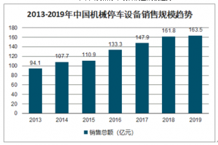 2013年以來,我國機械式停車設備銷售規模持續提升,但整體增速震蕩下行,2019年,我國機械式停車設備銷售規模為163.5億元,同比增長1.0%。