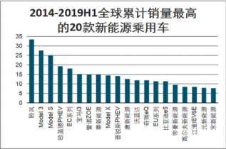 2014-2019H1全球累計(jì)銷量最高的20款新能源乘用車