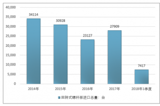 2016年我國回轉(zhuǎn)式螺桿泵進口總量23127臺 ,2017年進口總量27909臺 ;2018年1季度進口總量7417臺 。