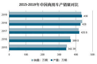 2019年商用車產量完成436萬輛,產量同比增長1.9%;銷量432.4萬輛,下降1.1%。分車型產銷情況看,客車產銷分別完成47.2萬輛和47.4萬輛,同比分別下降3.5%和2.2%;