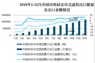 2019年1-12月中國(guó)中藥材及中式成藥出口數(shù)量及出口金額情況