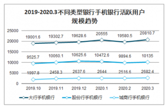 2019-2020.3不同類型銀行手機銀行活躍用戶規(guī)模趨勢