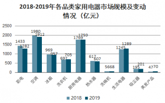 2018-2019年各品類家用電器市場規(guī)模及變動情況(億元)