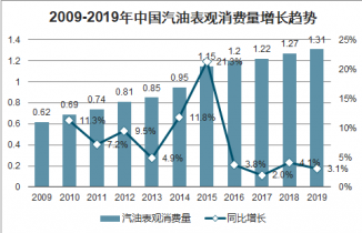 2009-2019年中國(guó)汽油表觀消費(fèi)量增長(zhǎng)趨勢(shì)