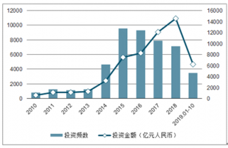 投資金額方面,2010-2018年穩中有升。2019年1-10月,中國私募股權市場投資金額為6216.67億元,預計全年將達到7460.01億元,相較2018年下跌48.93%。