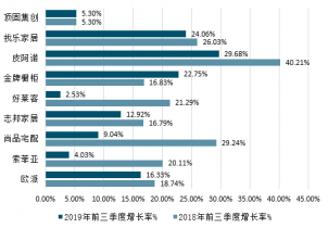 2018-2019年全國重點上市家居企業營收增速情況