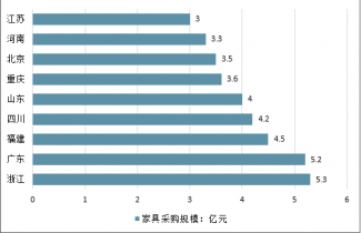 2019年上半年全國重點省份家具采購規模情況