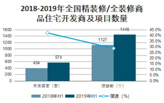 2018-2019年全國精裝修/全裝修商品住宅開發(fā)商及項目數(shù)量