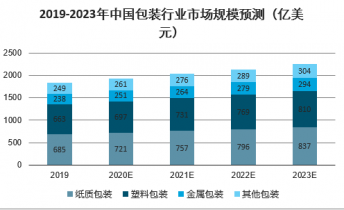 2019-2023年中國包裝行業(yè)市場規(guī)模預測(億美元)