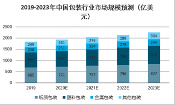 2019-2023年中國(guó)包裝行業(yè)市場(chǎng)規(guī)模預(yù)測(cè)(億美元)