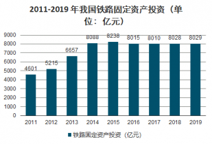 2011-2019年我國(guó)鐵路固定資產(chǎn)投資(單位:億元)