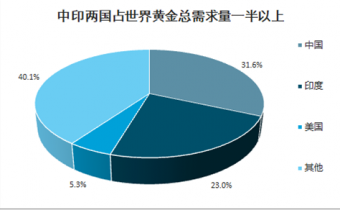 我國黃金需求量位于世界前列。中國是世界黃金需求量第一大國,消費、投資偏好較強。按黃金首飾、金幣金條口徑計,中國和印度在全球黃金消費的占比分別為32%和23%,其他國家的占比則較低。