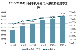 2015-2020年中國(guó)手機(jī)購(gòu)物用戶(hù)規(guī)模及使用率走勢(shì)