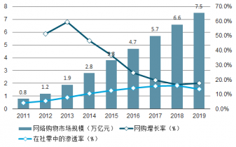 2011-2019年中國(guó)網(wǎng)絡(luò)購(gòu)物市場(chǎng)交易規(guī)模