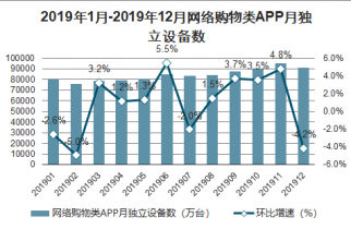 2019年1月-2019年12月網(wǎng)絡(luò)購(gòu)物類APP月獨(dú)立設(shè)備數(shù)