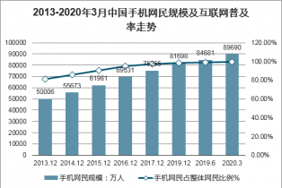 2013-2020年3月中國(guó)手機(jī)網(wǎng)民規(guī)模及互聯(lián)網(wǎng)普及率走勢(shì)