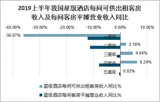 2019上半年我國星級酒店每間可供出租客房收入及每間客房平攤營業(yè)收入同比
