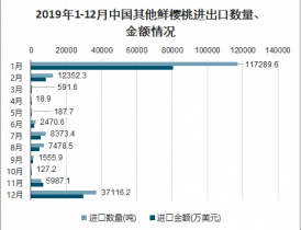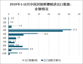 2019年1-12月中國其他鮮櫻桃進出口數量、金額情況