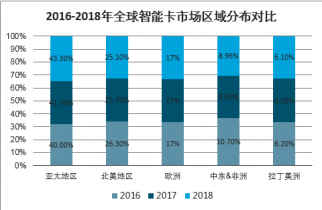 2016-2018年全球智能卡市場區(qū)域分布對比