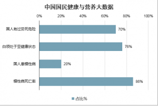 《中國(guó)國(guó)民健康與營(yíng)養(yǎng)大數(shù)據(jù)報(bào)告》(以下簡(jiǎn)稱(chēng)“報(bào)告”)顯示,70%國(guó)人有過(guò)勞死危險(xiǎn),76%的白領(lǐng)處于亞健康狀態(tài),20%國(guó)人患慢性病,慢性病死亡率占86%。