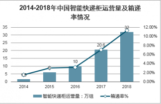 2014-2018年中國智能快遞柜運營量及箱遞率情況