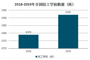 2019年全國中等職業學校1.01萬所,比上年減少151所。其中,普通中等專業學校3339所,比上年增加17所;成人中等專業學校1032所,比上年減少65所;職業高中3315所,比上年減少116所;技工學校2392所,比上年增加13所。