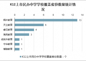 K12上市民辦中學學校覆蓋省份數量統計情況