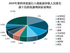 2019年第四季度旅行入境旅游外聯(lián)人次排名前十位的客源地國家或地區(qū)