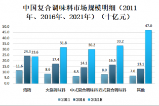 中國復合調味料市場規模明細(2011年、2016年、2021年)(十億元)