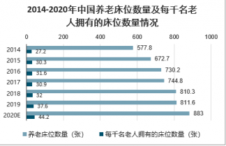 2014-2020年中國養老床位數量及每千名老人擁有的床位數量情況