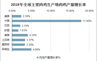 2019年全球主要肉雞生產(chǎn)地肉雞產(chǎn)量增長(zhǎng)率