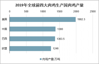 2019年全球前四大肉雞生產(chǎn)國(guó)肉雞產(chǎn)量